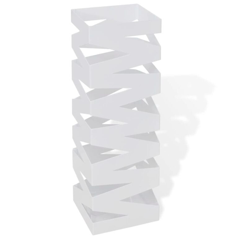 Paraplu- en wandelstokhouder strepen wit vierkant staal 48,5 cm