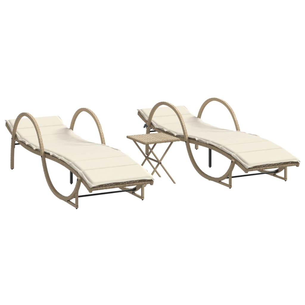 Ligstoelen 2 st met tafel poly rattan beige