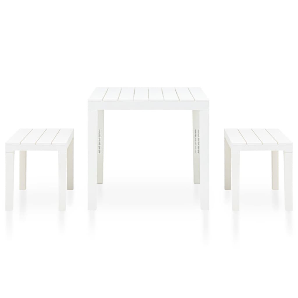 Geniet met deze tuinset van loungen of dineren in de tuin met vrienden en familie! Deze tuinset is gemaakt van duurzaam, weerbestendig en onderhoudsvrij kunststof, dat slijtvast is en geschikt is voor dagelijks gebruik. Banken met brede zitplaatsen zorgen voor voldoende ruimte voor je familie en vrienden. Er is geen montage vereist. De levering bevat 1 tafel en 2 bijpassende banken.