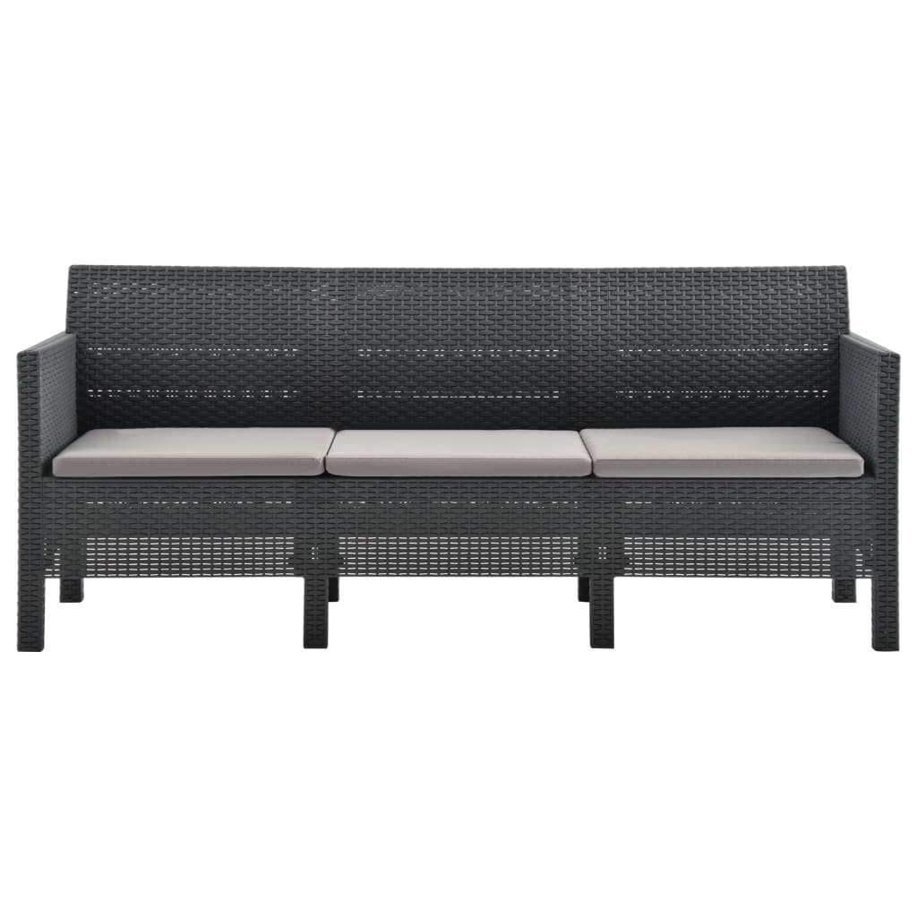 Deze 3-zitstuinbank met kussens is ontworpen om het middelpunt van je tuin, patio of terras te zijn. De tuinbank is gemaakt van polypropyleen waardoor hij gemakkelijk schoon te maken is en geschikt is voor buitengebruik. De ergonomische rugleuning en afgeronde armleuning bieden extra zitcomfort. Dankzij de lichtgewicht constructie is deze bank gemakkelijk te verplaatsen. De kussenhoes is uv-bestendig, afneembaar en wasbaar. Opmerking: om de levensduur van je tuinmeubelen te verlengen, raden wij je aan om de meubelen regelmatig schoon te maken en ze niet zonder bescherming buiten te laten staan.Reinigen: gebruik een milde zeepoplossing.Opbergen: indien mogelijk op een koele, droge plaats binnenshuis opbergen. Als het product buiten wordt opgeborgen, bescherm het dan met een waterdichte hoes. Veeg en droog, na regen of sneeuwval, overtollig water of sneeuw van vlakke oppervlakken af. Zorg voor voldoende luchtcirculatie om vochtschade te voorkomen. Maximaal 110 kg per zitting. Wees je bewust van het risico van open vuur en andere bronnen van sterke hitte in de nabijheid van het product.