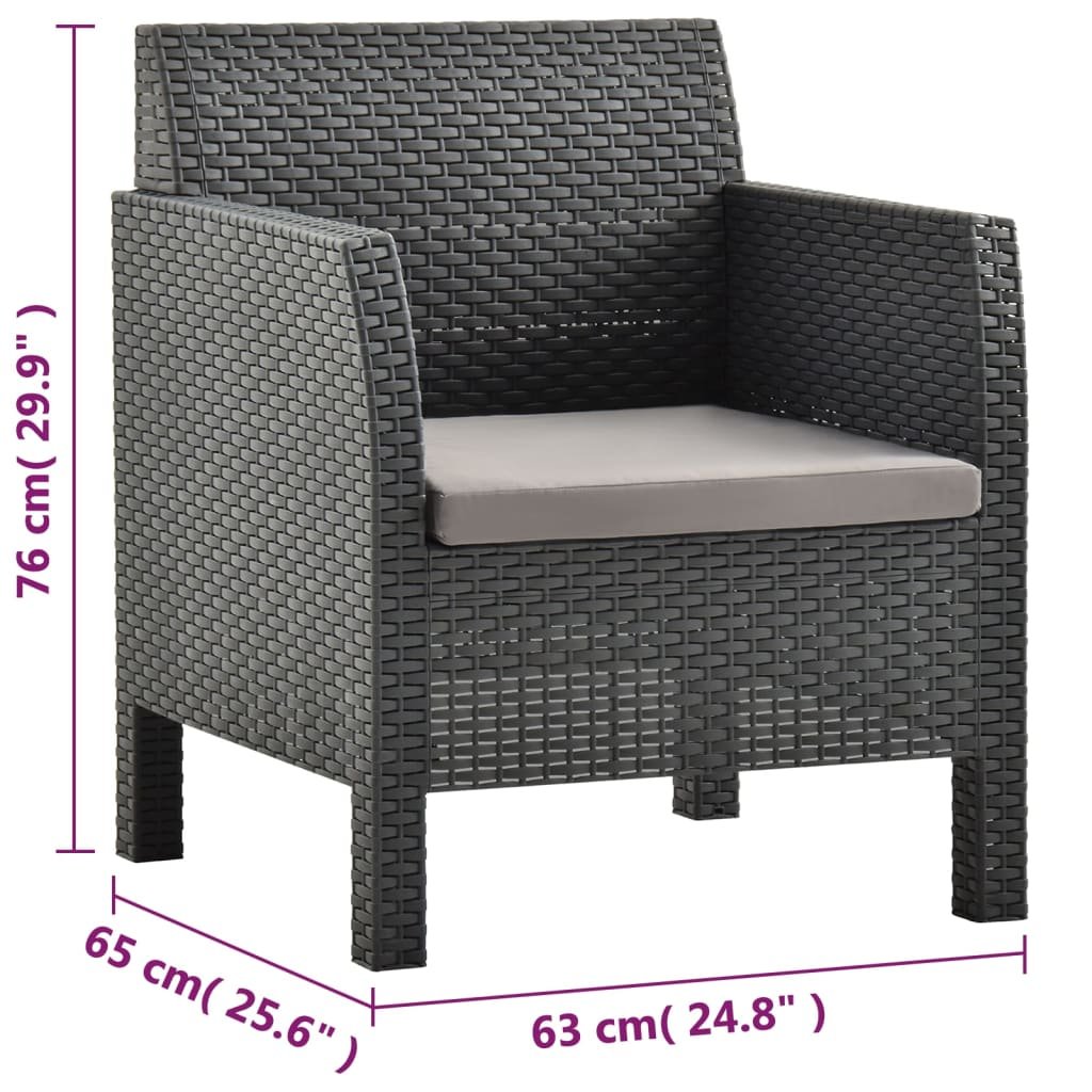 3-delige Loungeset met kussens PP rattan antracietkleurig