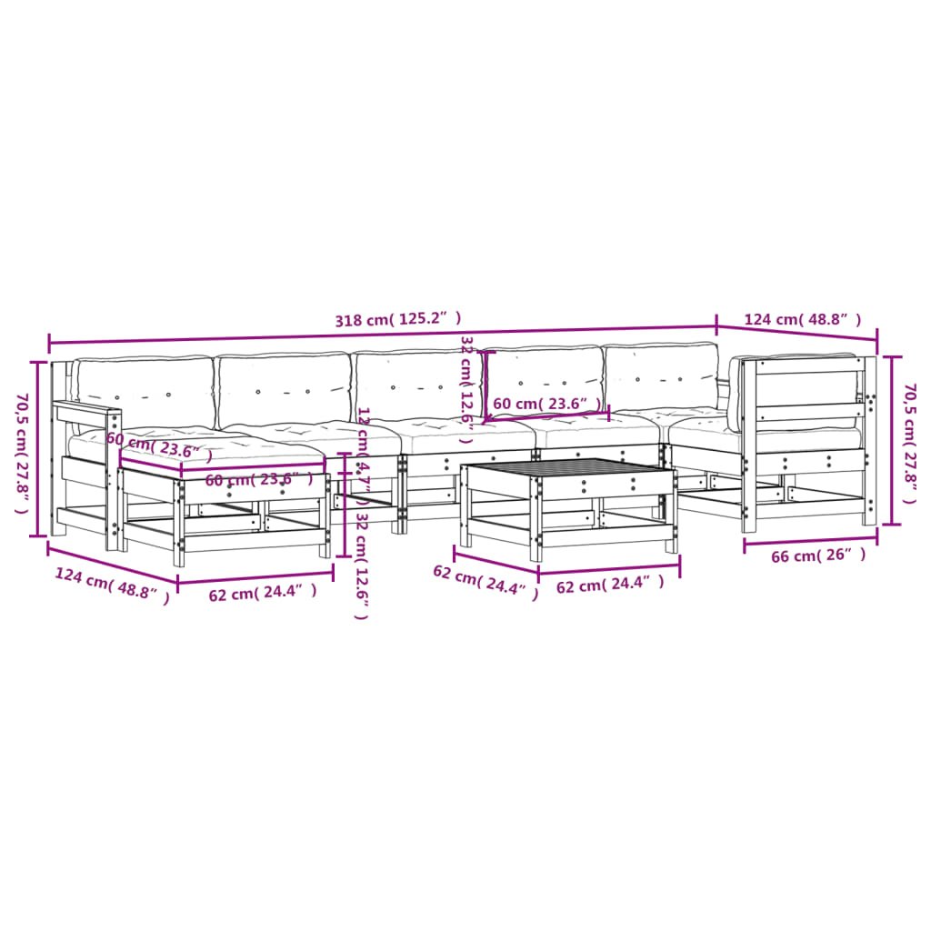 8-delige Loungeset met kussens massief hout wit