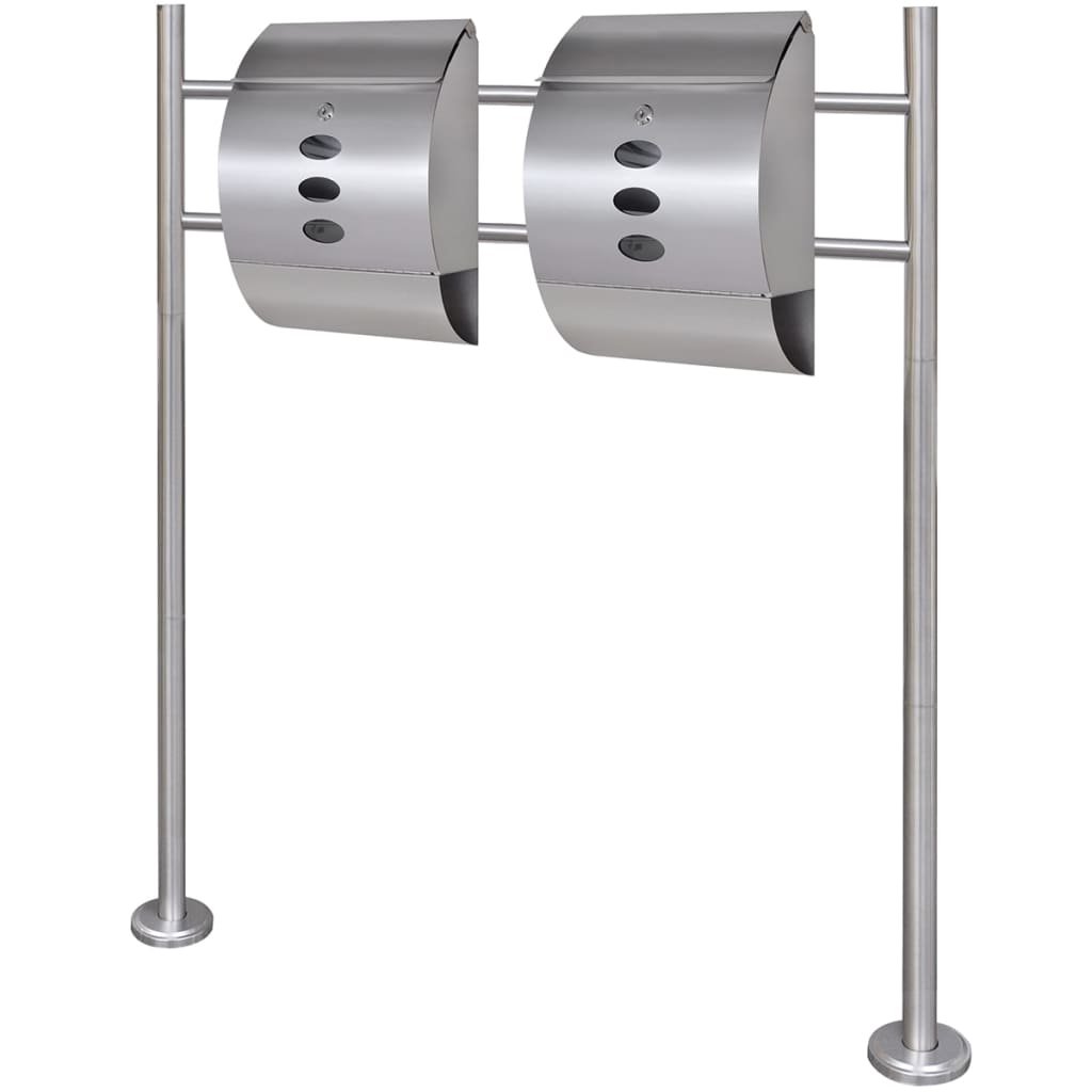 Deze stevige RVS dubbele brievenbus heeft een strak en modern ontwerp. De set bestaat uit een standaard en twee brievenbussen, een krantenrol, een slot met twee sleutels en 3 kleine raampjes zodat u kunt zien of er post is. Onze kwalitatief hoogwaardige brievenbus is een uitstekende keuze! Levering bevat twee brievenbussen, 4 sleutels en montageaccessoires.