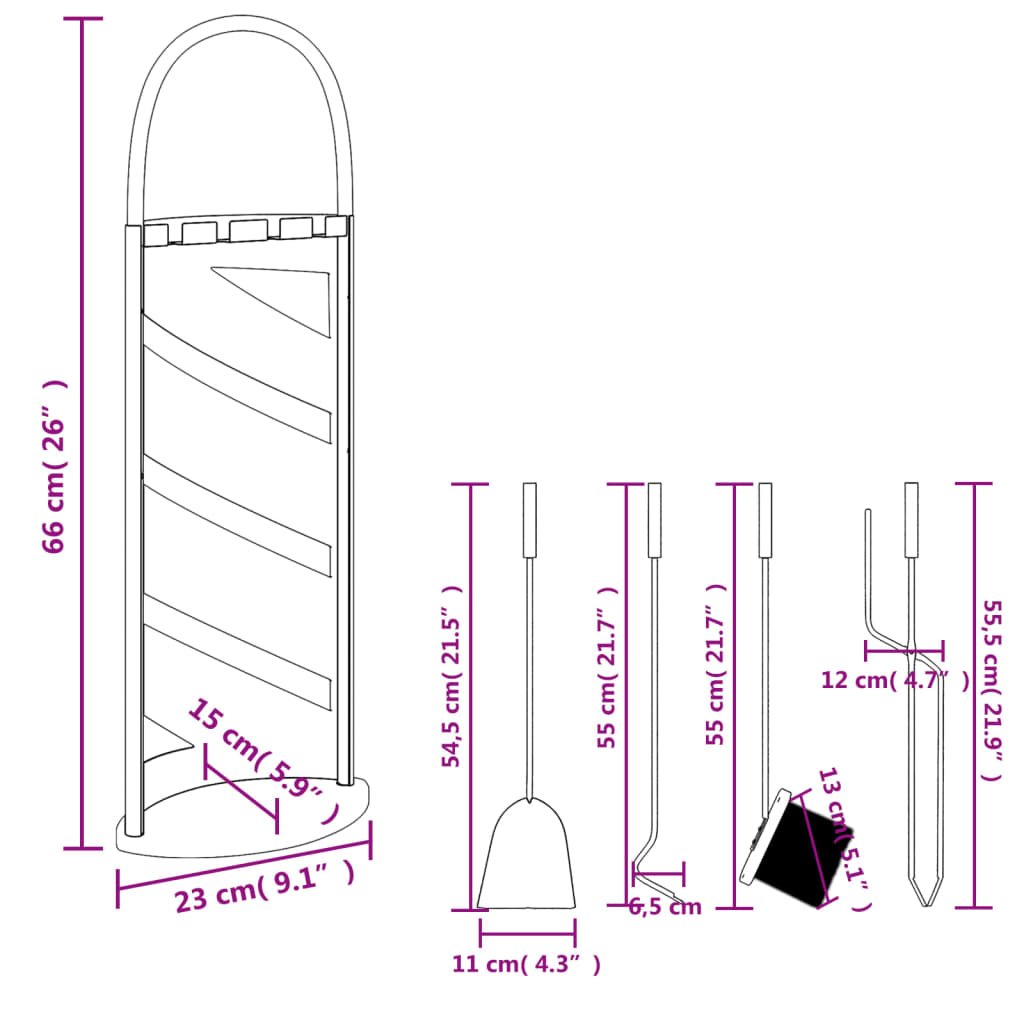 Provira 5-delige Haardset 23x15x66 cm staal