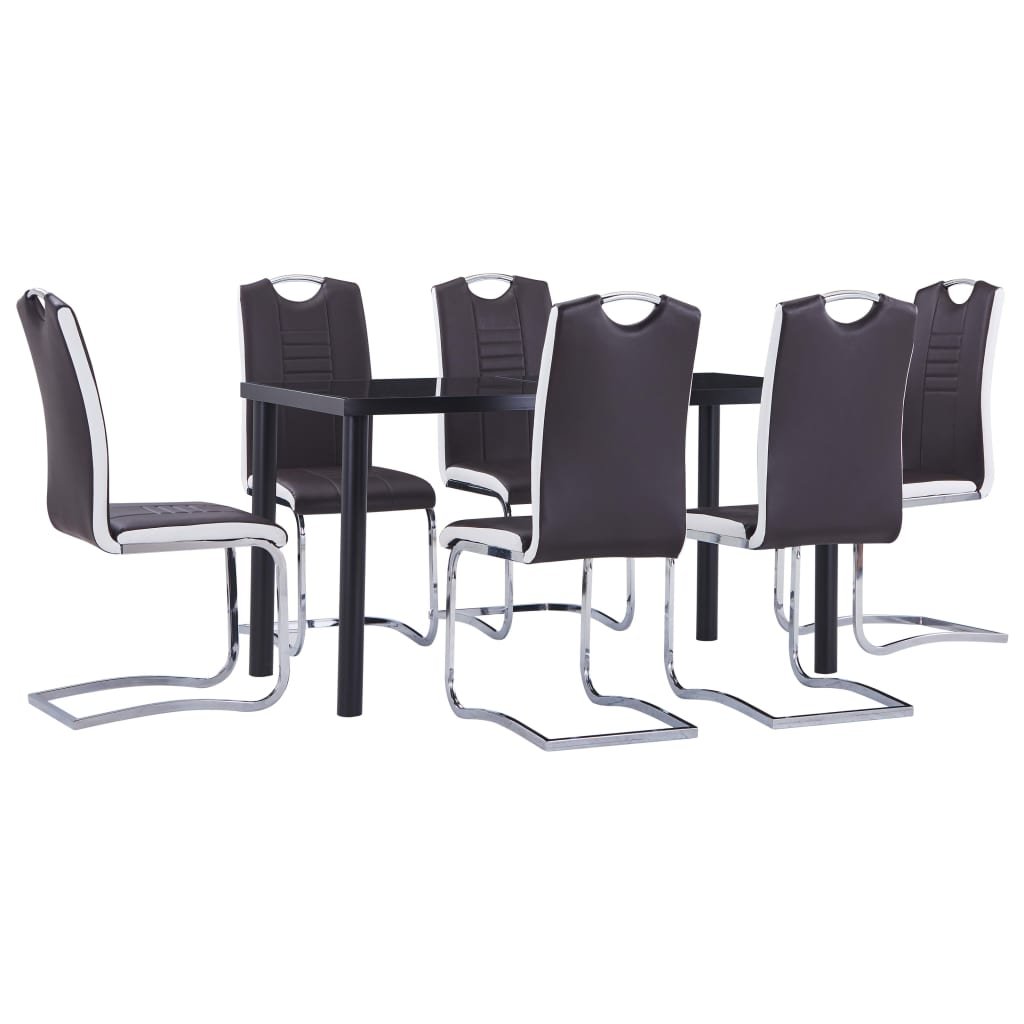 Onze eetset heeft een stijlvol en modern ontwerp, en is perfect voor elke woning, tuin, bar, pub of restaurant. Zijn nette en eigentijdse design is een aanvulling op elk interieur. De tafel heeft een glad gehard glazen tafelblad dat eenvoudig te reinigen is met een vochtige doek. Het gepoedercoat metalen frame is stabiel en duurzaam, en draagt bij aan de massieve constructie van de tafel. De stoelen zijn bekleed met zacht kunstleer en zijn dik gevoerd voor maximaal comfort. Het ergonomische ontwerp maakt de eetkamerstoel buitengewoon comfortabel om op te zitten. Bovendien maakt het verchroomd stalen frame de stoelen zeer stevig en stabiel. Elke stoel heeft een handgreep op de rugleuning waardoor de stoelen gemakkelijk te verplaatsen zijn. Deze eethoek is eenvoudig te monteren. Onze eetset is ideaal voor een heerlijk diner met familie en vrienden. Maximaal 110 kg per zitting. Wees je bewust van het risico van open vuur en andere bronnen van sterke hitte in de nabijheid van het product.