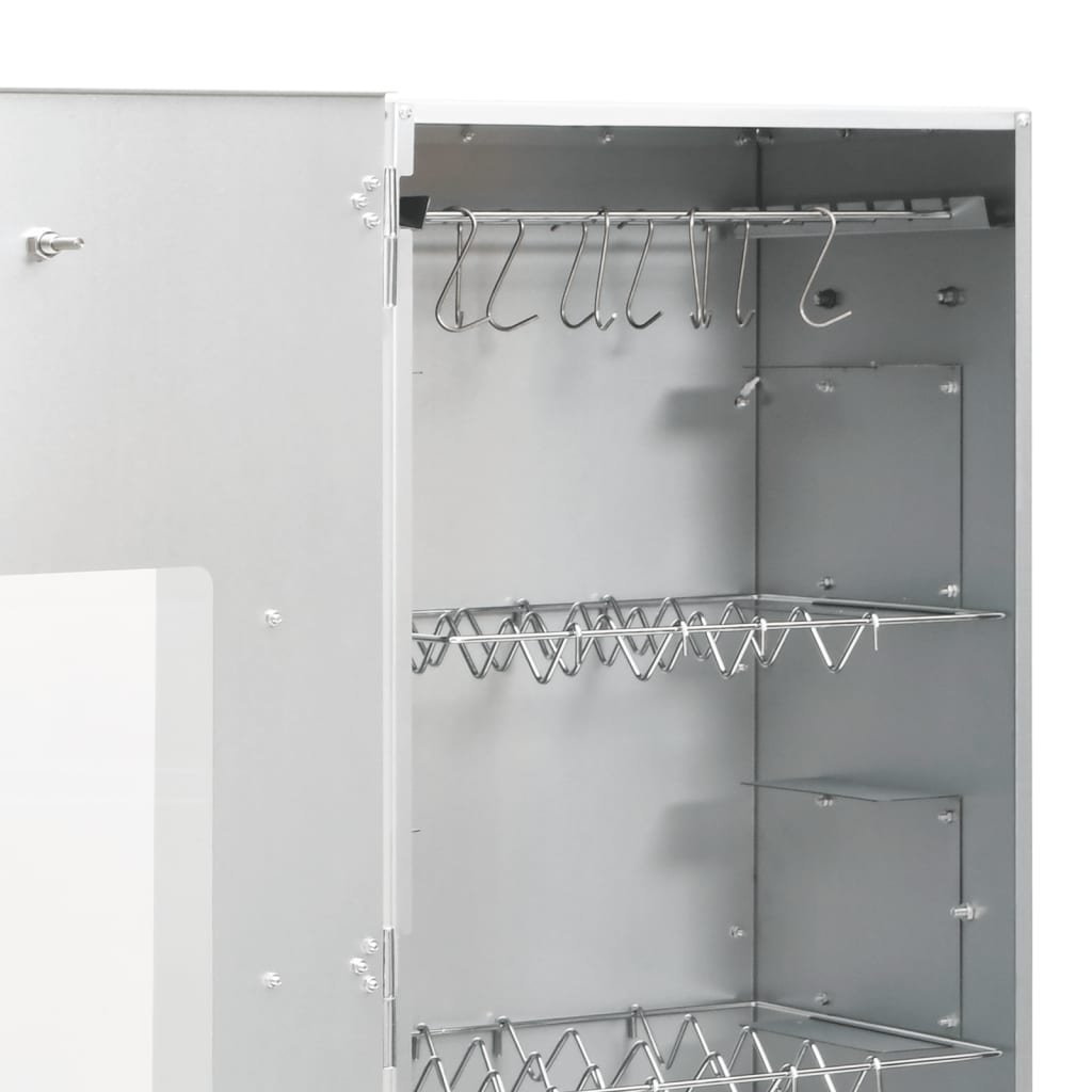 Gebruik deze multifunctionele rookoven met houtsnippers en een koude rookgenerator om er een feest van te maken en buiten te genieten van een gezellige tijd met je gezin! Duurzaam materiaal: staal is een uitzonderlijk hard en sterk materiaal. Het biedt stevigheid en stabiliteit. Verzinking biedt een betere bescherming tegen roest en is nuttig voor producten die buiten worden gebruikt.Voldoende rookruimte: de buitenroker biedt voldoende ruimte voor het roken van je vlees, vis, worstjes, enzovoort. De meegeleverde S-vormige haken en roosters maken je BBQ praktischer.Indicatieve functie: de rookoven is uitgerust met een thermometer om de oventemperatuur te controleren. Dankzij het glazen venster van de smoker kun je ook het eten binnenin in de gaten houden voor de beste grillresultaten.Koude rookgenerator: vul hem met zaagsel en steek hem aan met een theelichtje tot het zaagsel van kleur begint te veranderen. Verwijder het theelichtje en plaats de rookgenerator in de koude rookkast. Het vierkante, compacte gaas zorgt ervoor dat rooksnippers tot wel 12 uur lang gelijkmatig en langzaam branden. Waarschuwing:Gebruik de barbecue niet in afgesloten ruimtes of woonruimtes, zoals huizen, tenten, caravans, campers en boten. Er is dan een gevaar voor koolstofmonoxide vergiftiging. WAARSCHUWING! Niet binnenshuis gebruiken! WAARSCHUWING! Deze barbecue wordt erg heet. Verplaats hem niet tijdens het gebruik. Houd kinderen en huisdieren op afstand. GPSR