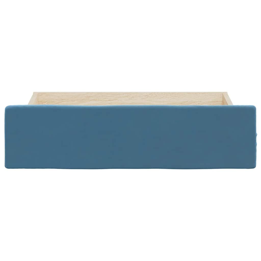 Bedlades 2 st bewerkt hout en fluweel blauw