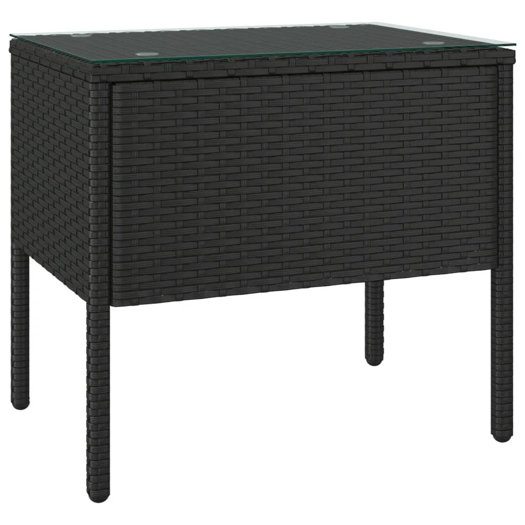 Bijzettafel 53x37x48 cm poly rattan en gehard glas zwart