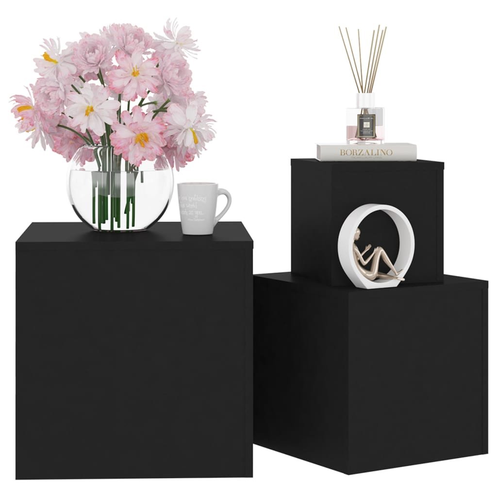 Bijzettafels 3 st bewerkt hout zwart
