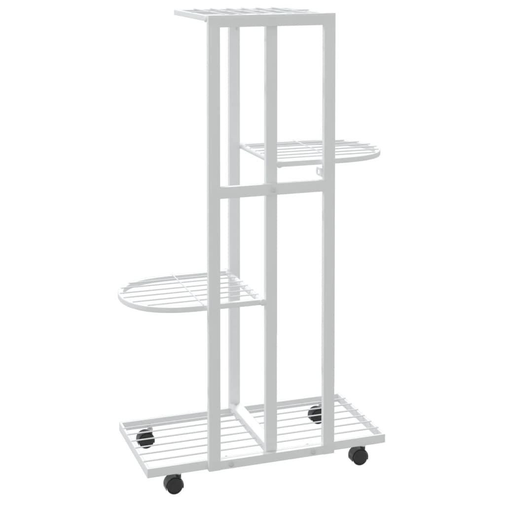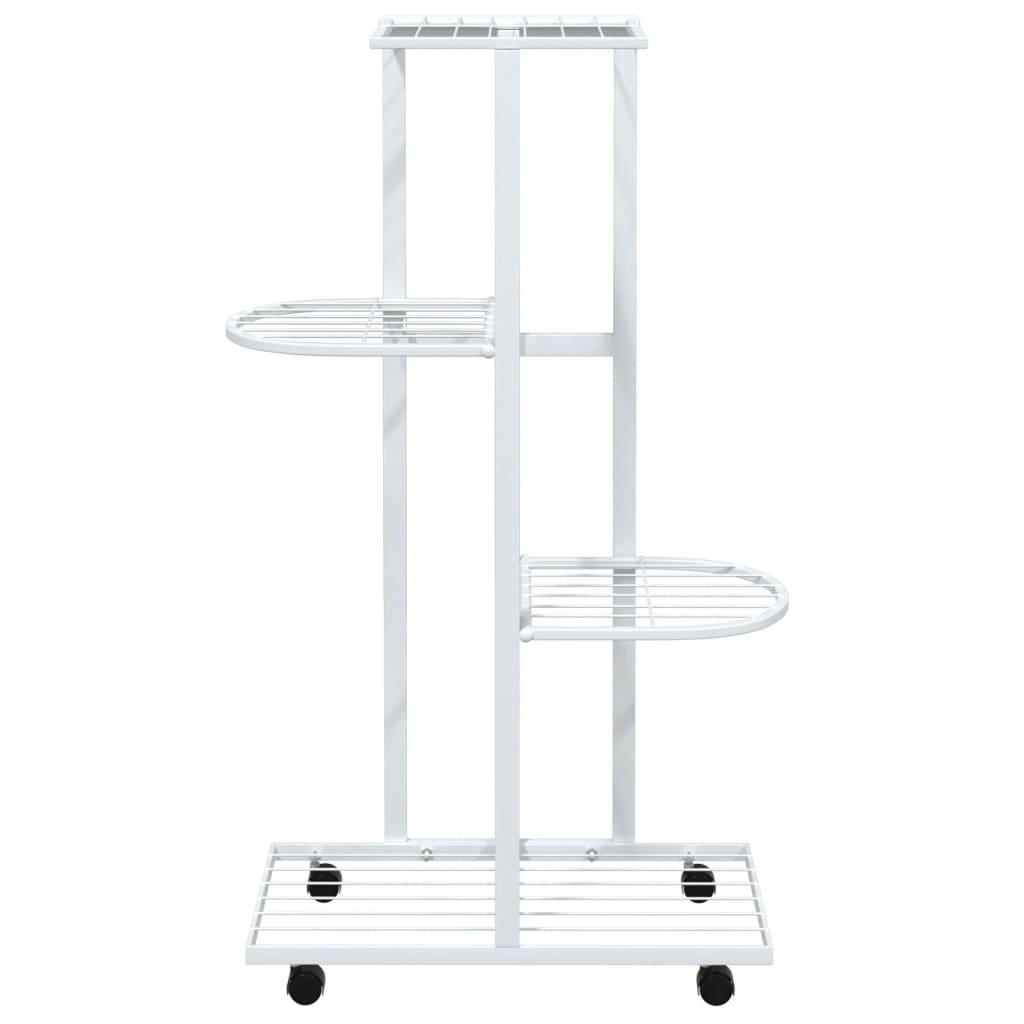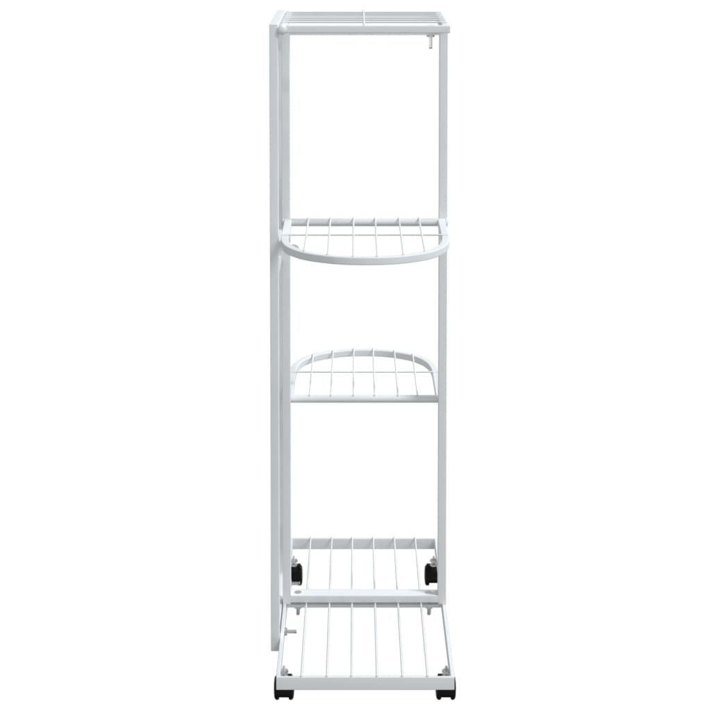 Bloemenstandaard met wielen 4-laags 44x23x80 cm ijzer wit