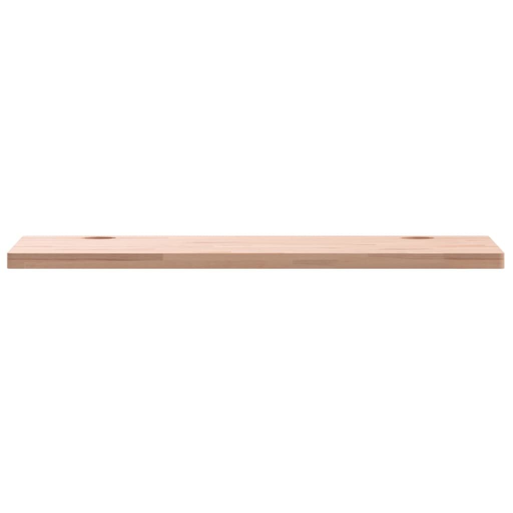 Dit houten bureaublad is de ideale oplossing om je tafels op te frissen en tegelijkertijd een natuurlijke sfeer in huis te halen. Massief beukenhout: dit bureaublad is gemaakt van massief beukenhout, een prachtig natuurlijk materiaal. Beukenhout heeft een rechte nerf en is zeer duurzaam.Veelzijdige toepassingen: dit massief houten bureaublad is perfect voor bureaus, schrijftafels, computerbureaus, eettafels en meer. Je kunt het ook combineren met elke gewenste gestileerde poten.Afgeronde hoeken: het bureaublad heeft 4 afgeronde hoeken die ongelukken helpen voorkomen en je beschermen tegen mogelijke verwondingen.Praktische kabelgaten: het bureaublad heeft 2 kabelgaten om je te helpen allerlei kabels te ordenen, waardoor er een opgeruimde en nette werkruimte ontstaat.Eenvoudig schoon te maken oppervlak: het gladde tafelblad is eenvoudig schoon te maken met een vochtige doek. Goed om te weten:Elk meubel is uniek met variaties in kleuren en nerven. De levering is willekeurig, wat de exclusiviteit en individualiteit van je product garandeert.