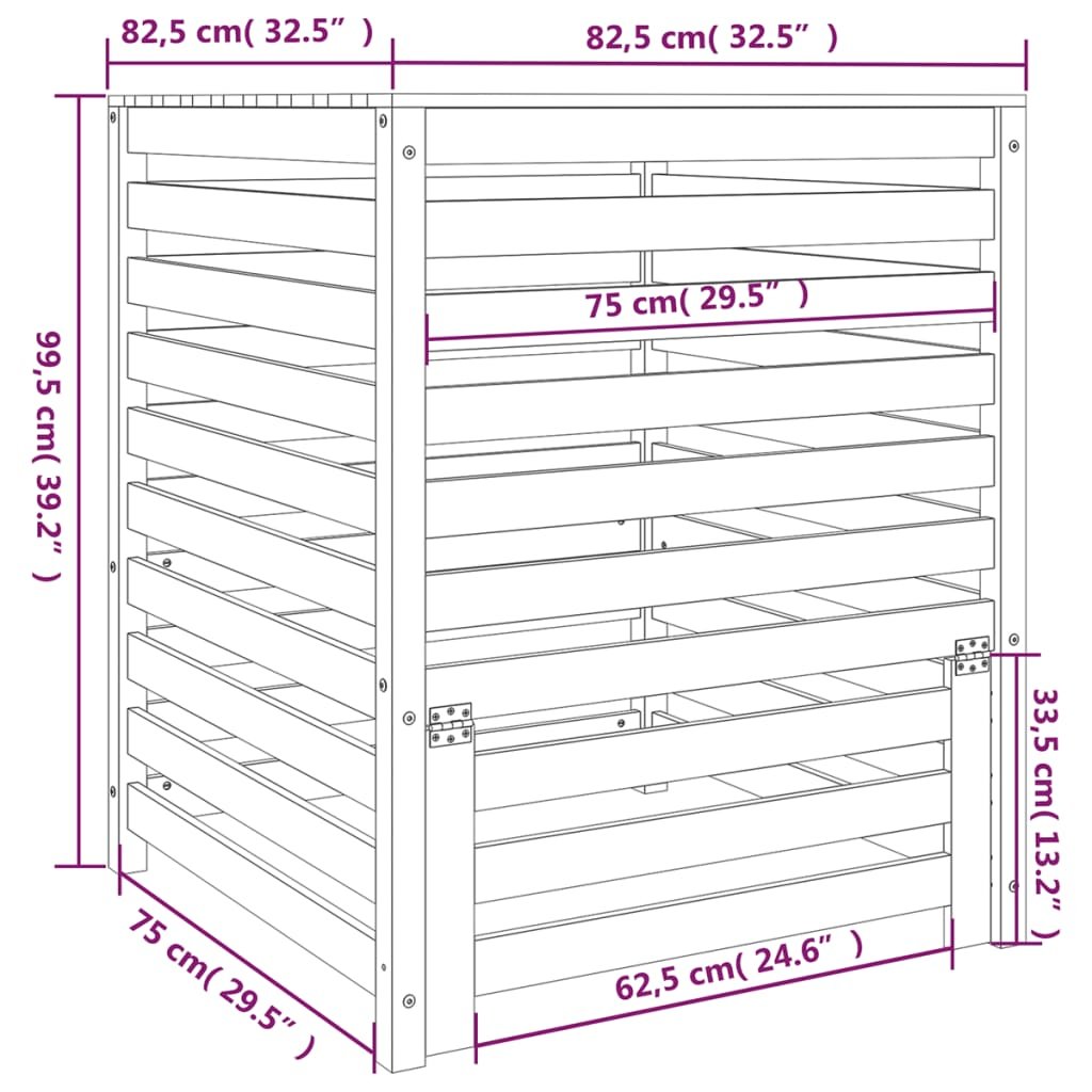 Compostbak 82,5×82,5×99,5 cm massief grenenhout wit