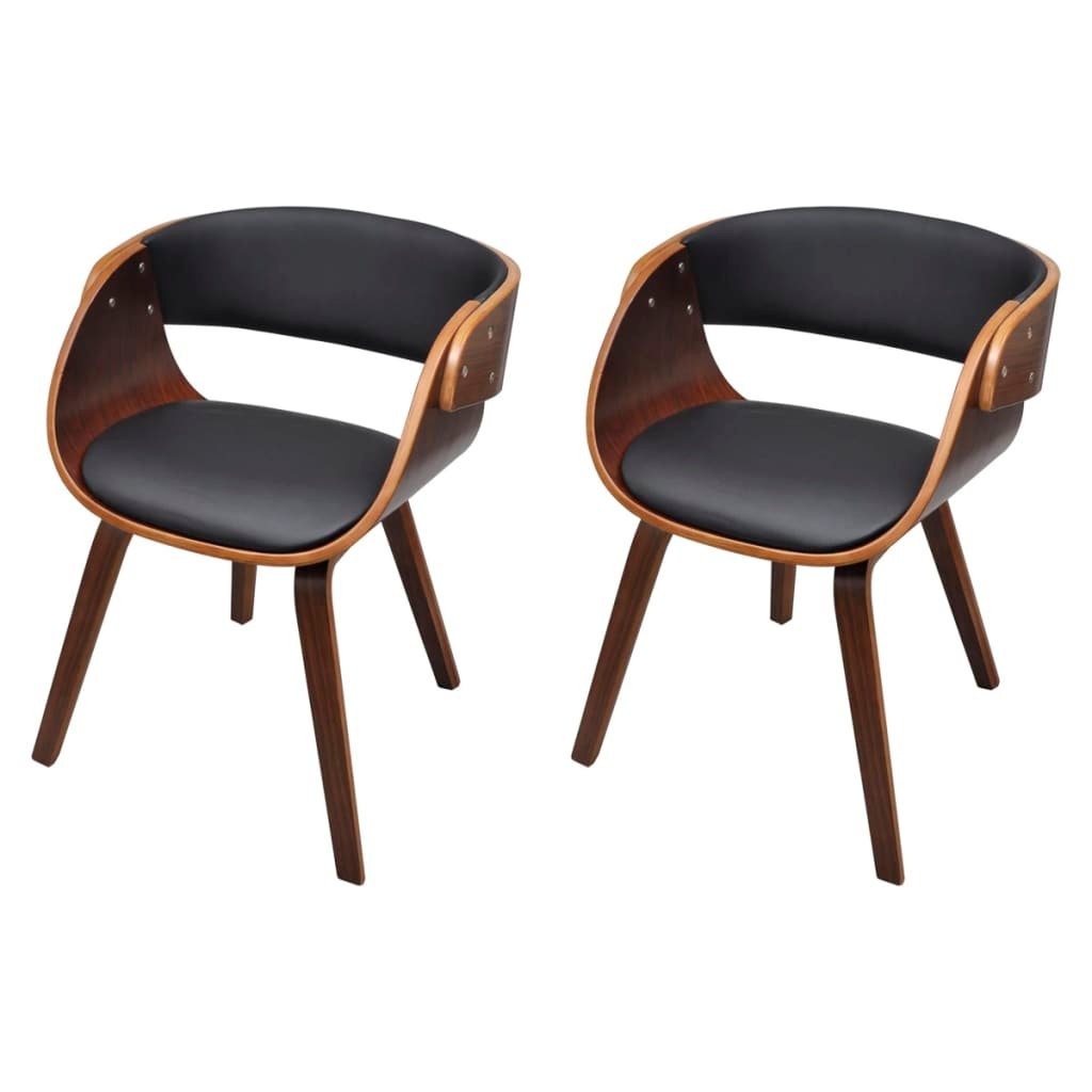 Provira Eetkamerstoelen 2 st gebogen hout en kunstleer bruin
