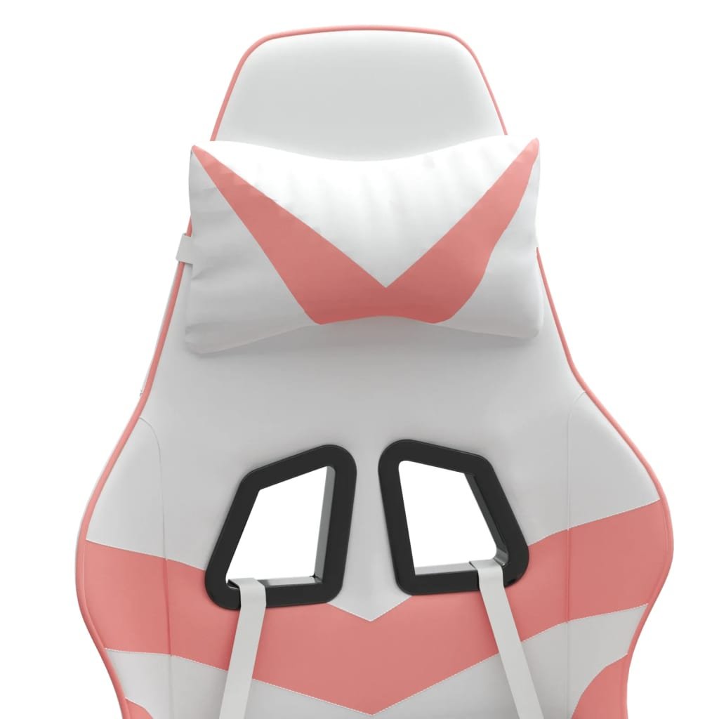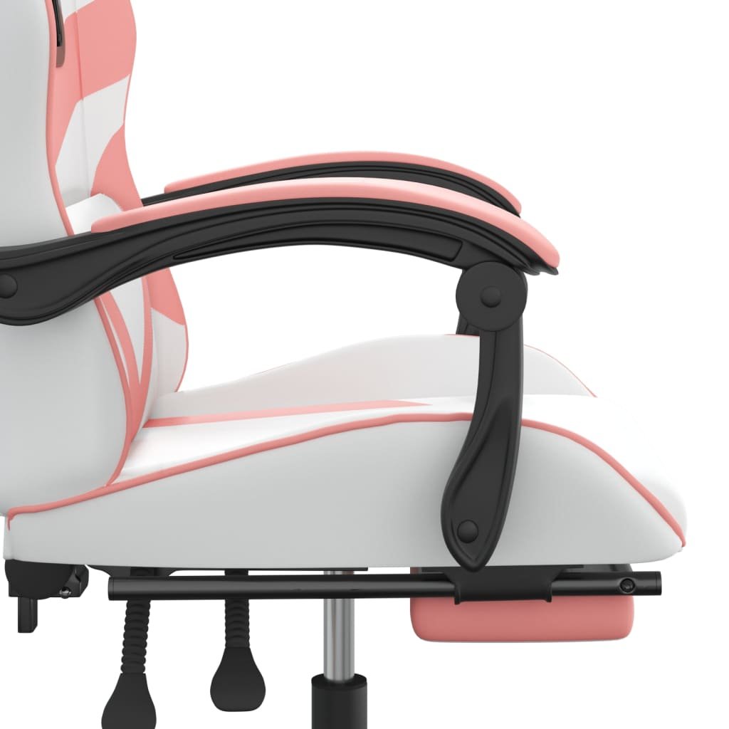 Gamestoel met voetensteun kunstleer wit en roze