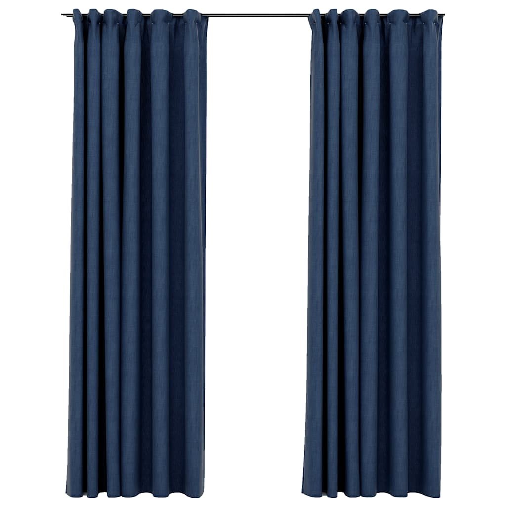 Gordijnen linnen-look verduisterend haken 2 st 140×225 cm blauw