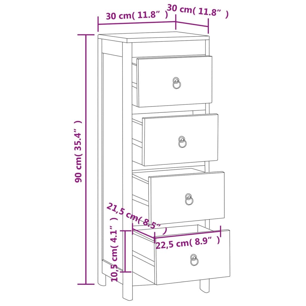Ladekast 30x30x90 cm massief teakhout