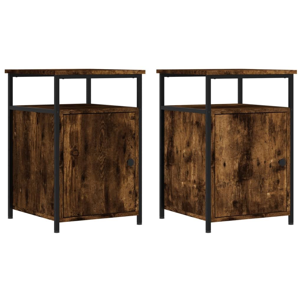 Provira Nachtkastjes 2 st 40x42x60 cm bewerkt hout gerookt eikenkleurig