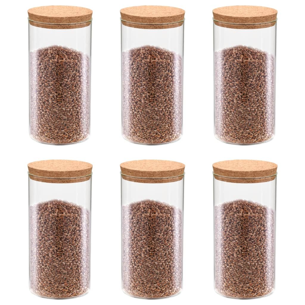 Opbergpotten met kurken deksel 6 st 1400 ml glas