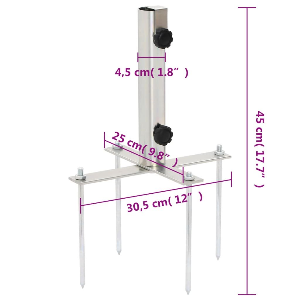 Provira Parasolvoet met grondpennen voor Ø32-38 mm staal zilverkleurig