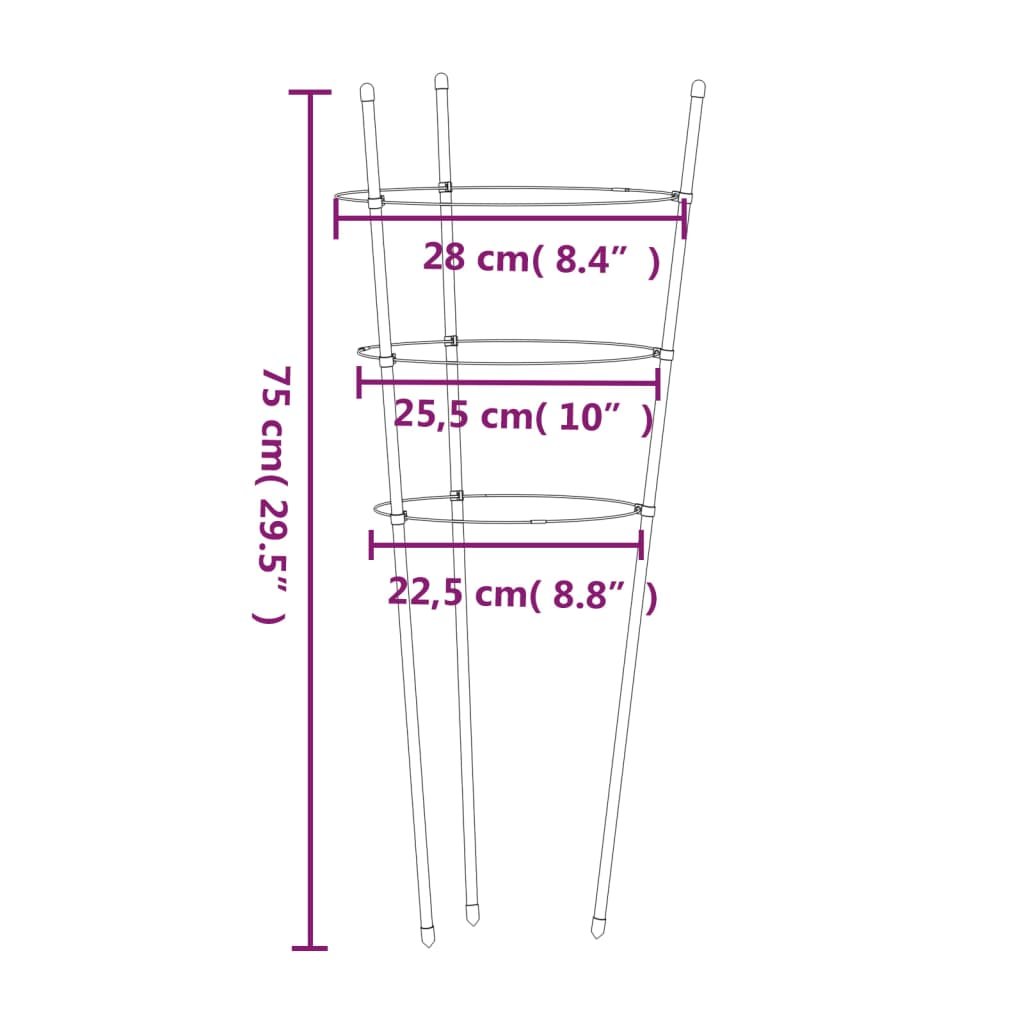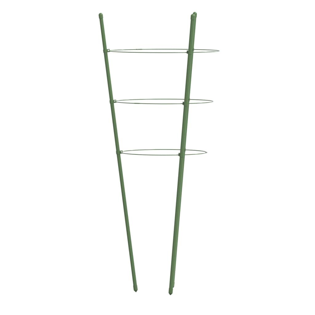 Plantensteunen 5 st met 3 ringen 75 cm staal groen