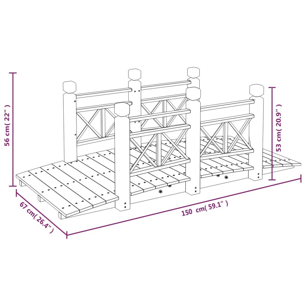 Tuinbrug met leuningen 150x67x56 cm massief vurenhout