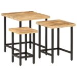 - Materiaal: massief mangohout met natuurlijke afwerking, bewerkt hout en ijzer