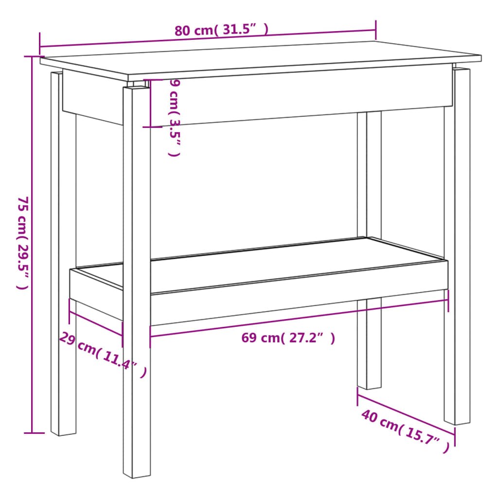 Wandtafel 80x40x75 cm massief grenenhout