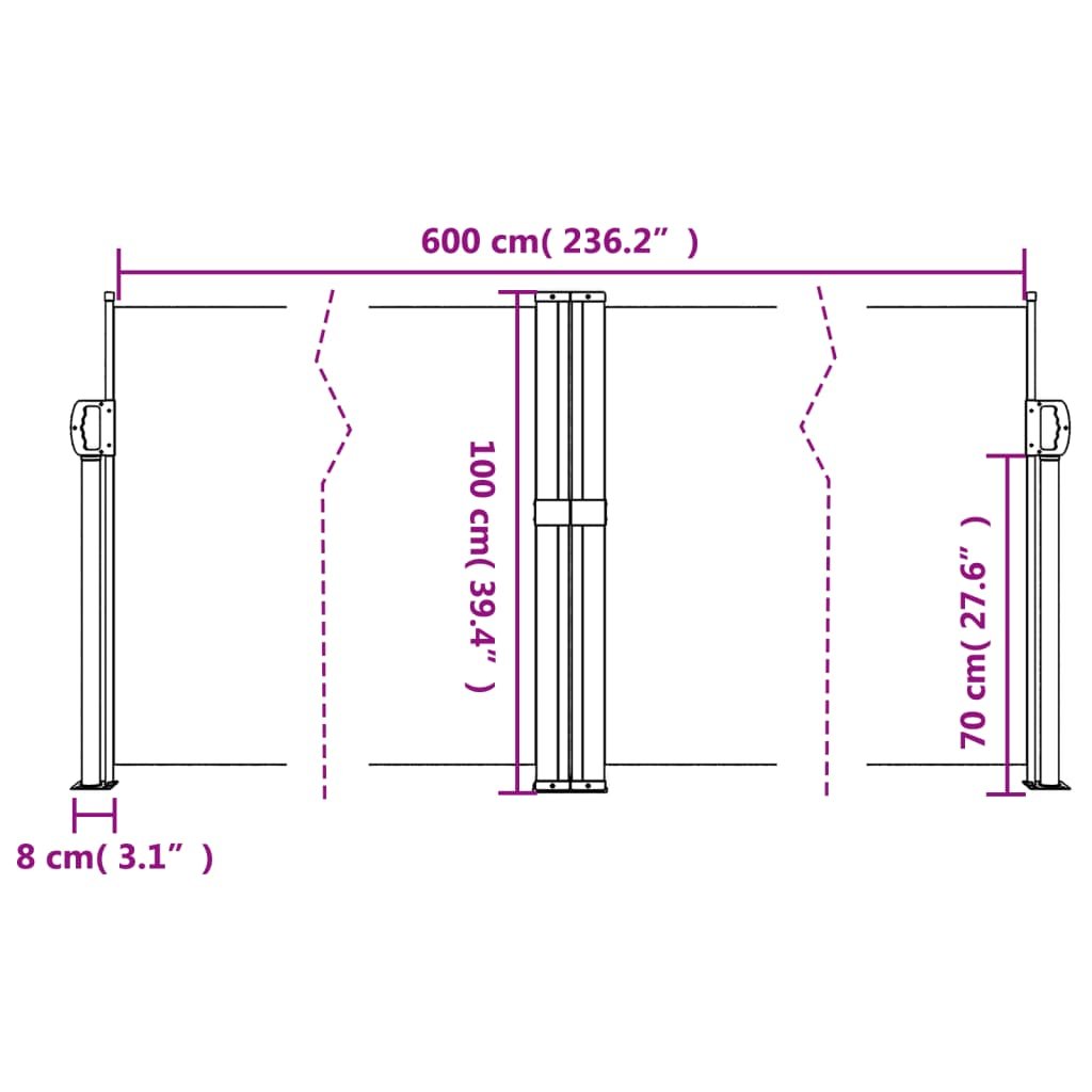 Windscherm uittrekbaar 100×600 cm crème