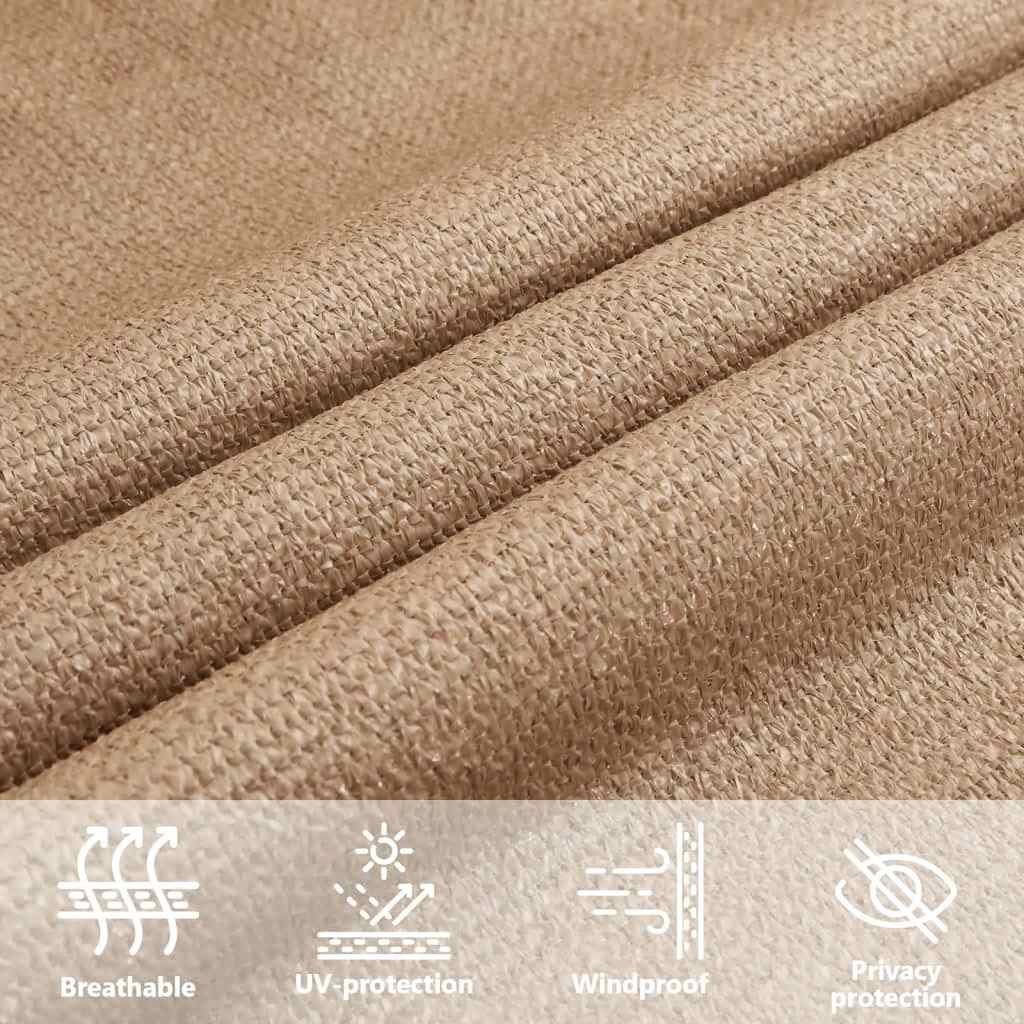Creëer waar je maar wilt een ontspanningsplek uit de zon, met deze HDPE schaduwdoek. Hij kan gebruikt worden in elke buitenruimte zoals je tuin, terras of balkon. Het zonnezeil, gemaakt van 100% HDPE (hogedichtheidpolyetheen), beschermt je tegen direct zonlicht, laat voldoende wind door en is waterdoorlatend. Het HDPE is speciaal behandeld, waardoor het schimmelwerend en uv-bestendig is. De luifel is eenvoudig te monteren dankzij de roestvrijstalen bevestigingsmiddelen op elke hoek en de inbegrepen touwen.