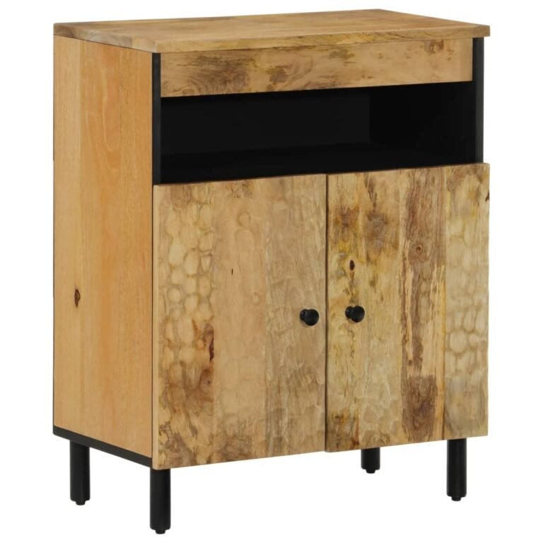- Materiaal: Massief mangohout met een zandstralende zwarte afwerking